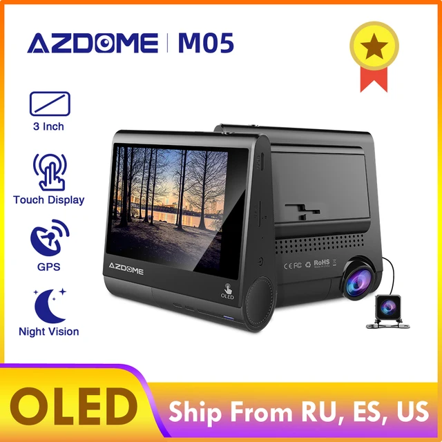AZDOME Dash Cam M05 3" OLED Touch Screen Car DVRs Recorder With GPS Vehicle Rear View Camera Camcorder Night Vision Dashcam