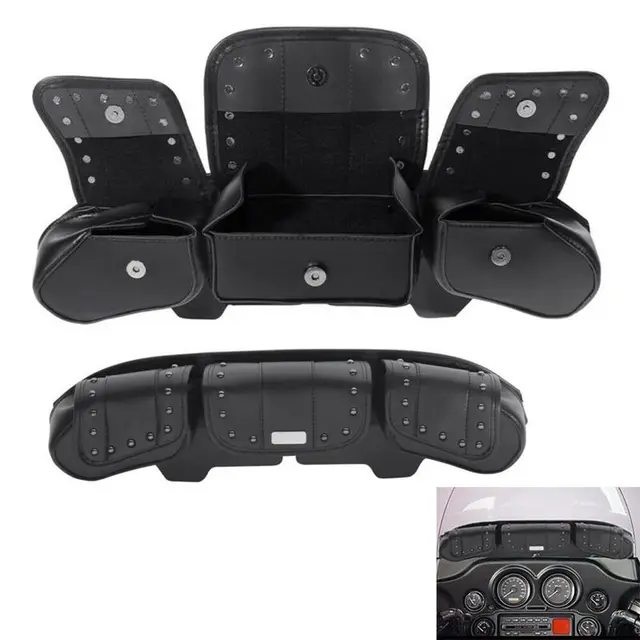 Product descriptionThis Product is one of Hot Product (New) Catalog and Category in Aliexpress, it meant get Good Sales and Good Rated by Most Buyers.Best Price Motorcycle Windshield Bag Saddle Tri Pouch 3 Pocket For Harley Touring Electra Street Tri Glide FLH with FREE Worldwide Shipping!