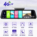 WHEXUNE 4G Car DVR Android Touch ADAS Dash Cam Car Rear view Mirror 10 Inch Dash Camera Dual Lens GPS Navigation Wifi Recorder