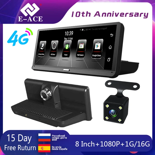 Limited Chance of E-ACE E14 Car Dvr 4G Android Dash Camara 8.0Inch Video Recorder GPS Navigation Dashcam ADAS Auto Re